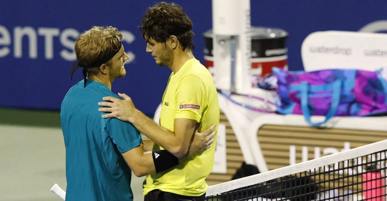 When Taylor Fritz (4) and Alejandro Davidovich Fokina (26) walked on court late Saturday night after weather delays pushed their match back, I was struggling to stay awake. Fritz came out swinging, playing a sharp service game and then breaking Fokina (who he beat twice in a row during grass season) right away. I thought the sleep gods would bless me with a quick match, but then everything went haywire. The intense heat and humidity quickly got to both players, and Fritz lost his serve in a way I don’t think he’s ever lost it before—he kept telling his coach and the umpire that the court lighting was so bright he couldn’t see. “It’s like staring into the sun,” he said. For those of us watching, it was like a totally different person had inhabited his body. In the first set, which he lost in a tiebreak after failing to serve it out at 5-3, he had an abysmal-for-him 57% first serve percentage. He went on to win the second and seemed likely to take the third when the momentum shifted, an exhausted Fokina snapped awake, and Fritz’s body cramped up to the point where he was limping. It was an ugly 3-hour-long dogfight from both guys, ultimately won by ADF, and as I stayed up until the wee hours of 1:30 am watching, I couldn’t help but question my sanity.