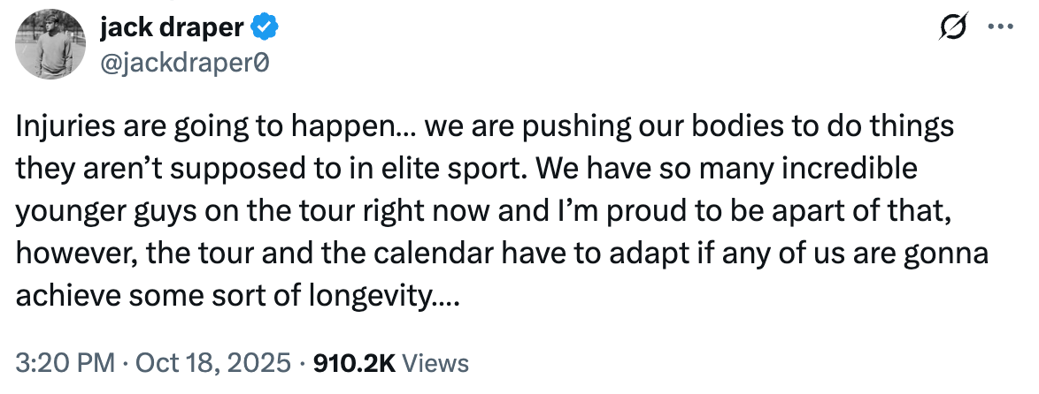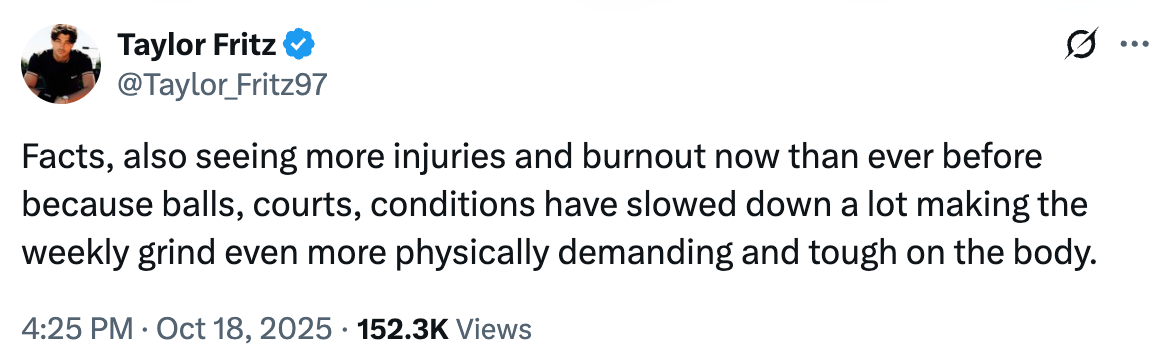The injury clearly struck a chord with Rune’s fellow players, many of whom used it as an opportunity to speak out about how the conditions of today’s tennis tour are setting them up for injury. Sharing a selection below: