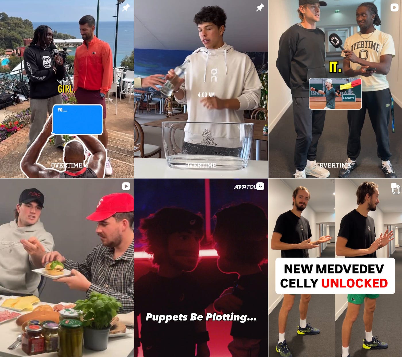 Much of this forgettable content comes from the ATP’s partnership with Overtime earlier this year. The stated goal was to bring behind-the-scenes tennis content to Overtime’s supposedly 100M+ millennial and Gen Z/Alpha audience — but it’s actually only shared between the ATP’s Instagram and a specialized account called @overtimetennis which has a mere 35.4K followers. Though the content is hosted by a charismatic and funny guy named West Von, it’s completely failed to deliver any true insights into what life is like as a tennis player.
